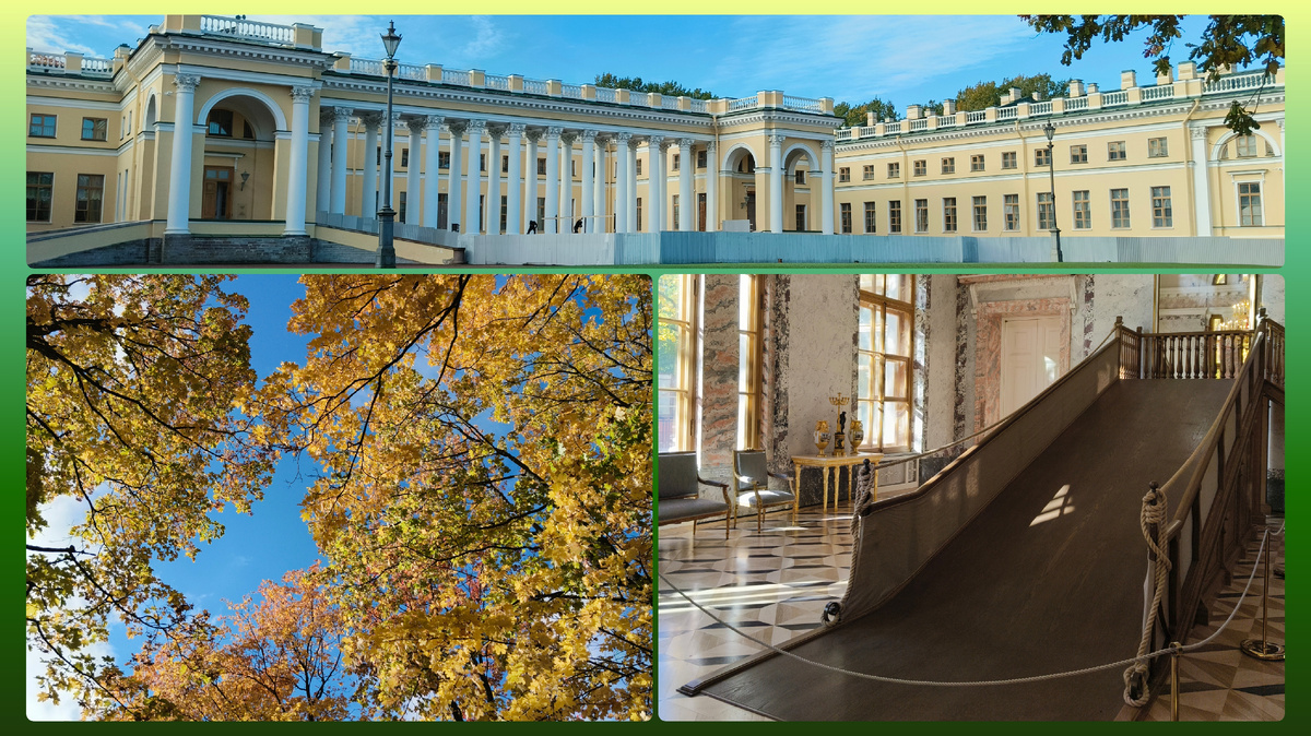 Наши три дня золотой осени в Царском Селе! Первый: Второй день мы провели в Екатерининском дворце и парке, сходили в Лицей (статья написана, в профиле). Сегодня третий (понедельник) - день сплошных везений! Первое: все сложилось как нельзя лучше, хозяйка разрешила продлить квартиру, заезда в этот день не было. 200 руб в час и до 15.00 мы можем ни о чем не беспокоиться, сразу после культурной программы на электричку и в Санкт-Петербург на Сапсан. Это будет после обеда, а пока мы по улицам города двигаемся в Александровский дворец. На сам город нам не хватило времени... А ведь он такой домашний и уютный! Мне пришла в голову мысль, что я бы хотела там жить, во как! Дошли до дачи, которую снимал молодой Пушкин. Сейчас там музей. Второе везение! Добрый человек оставил на дереве два венка из кленовых листьев! И мы устроили фотосессию) Итак, ДВОРЕЦ! Самое большое ВАУ для меня за эти три дня. Я была в нем, но очень давно, было открыто гораздо меньше залов. Перед посещением читала отзывы и пр