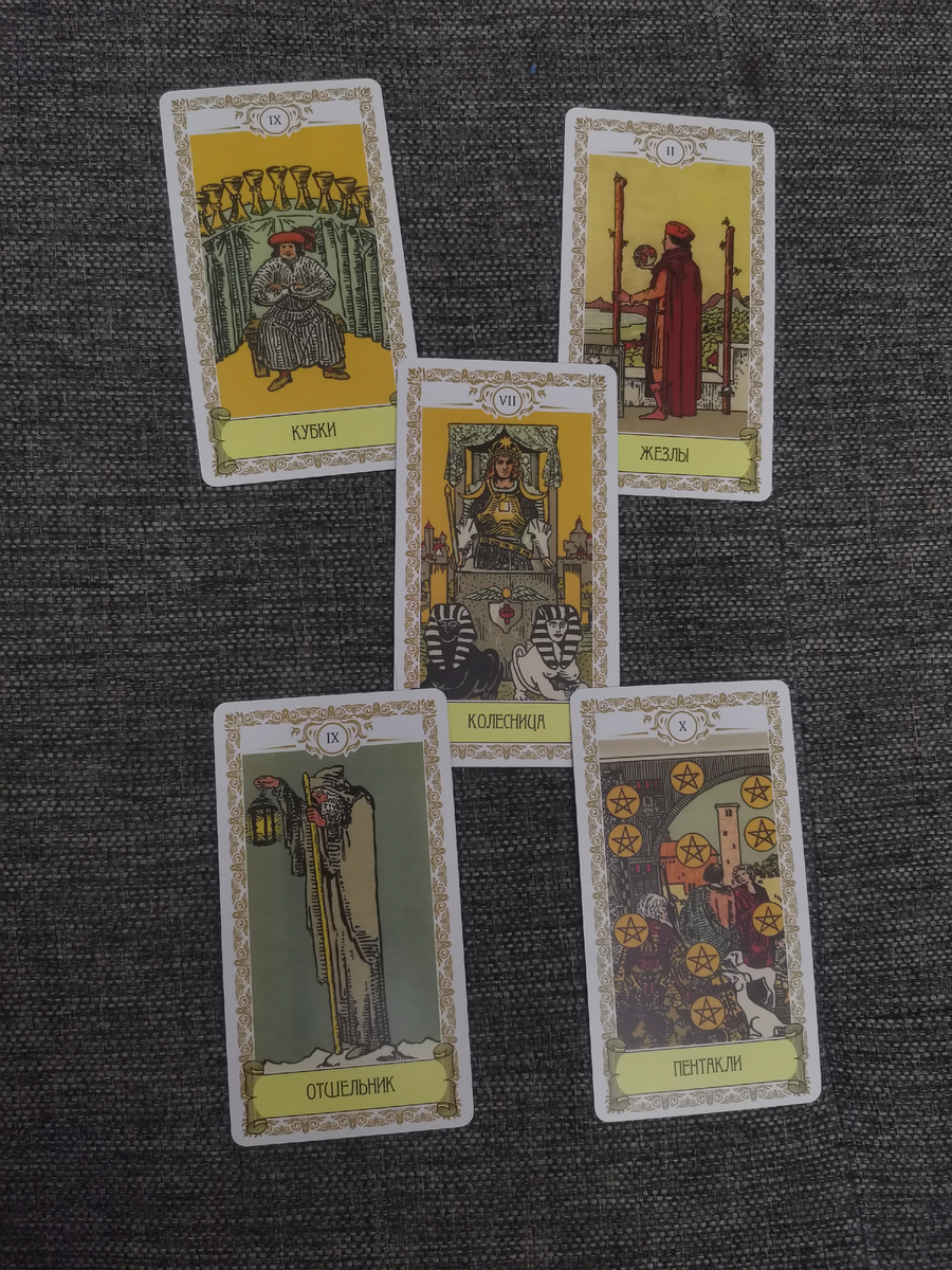 Расклад "Теневая сторона" Расклад "Теневая сторона" помогает выявить скрытые, неосознанные аспекты вашей жизни, которые могут влиять на ваши решения и поведение. Этот расклад позволяет понять, какие внутренние страхи, желания или блокировки могут стоять на пути к вашему благополучию. Рассмотрим карты Двойка Жезлов, Девятка Кубков, Колесница, Отшельник и Десятка Пентаклей и проанализируем, что они могут рассказать о вашей теневой стороне. Двойка Жезлов представляет собой момент выбора и планирования. Она символизирует желание расширения горизонтов и принятия важных решений. Однако в контексте теневой стороны эта карта может указывать на неуверенность и страх перед будущим. Вы можете находиться в состоянии неопределенности, взвешивая свои варианты, но не решаясь сделать шаг вперед. Ваша теневая сторона может проявляться в виде внутреннего конфликта между желанием двигаться вперед и страхом перед изменениями. Возможно, вам не хватает уверенности в своих способностях или вы боитесь не
