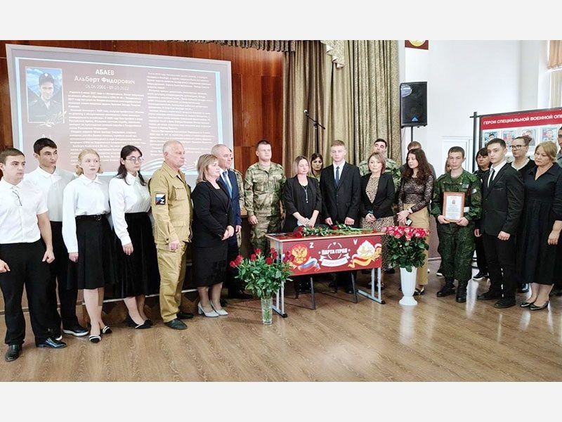 Во Владикавказском многопрофильном техникуме им. Г. Калоева состоялось открытие именной парты погибшего в СВО кавалера ордена Мужества, выпускника Альберта Абаева. В нем приняли участие мама героя Оксана Николаевна, члены его семьи, товарищи по учебе и воинской службе… В техникуме, носящем имя героя войны в Афганистане Георгия Калоева, традиции сохранения памяти о подвигах защитников Родины вошли уже в плоть и кровь всего коллектива – от преподавателей до первокурсников. И это выражается не только в оформлении фойе, коридоров и аудиторий учебного заведения, многочисленных патриотических мероприятиях и акциях. Более полутора десятков его выпускников стали участниками спецоперации на территории бывших регионов Украины, которые уже два года как добровольно вошли в состав России. К огромному сожалению, военные победы не даются бескровно, и пятеро выпускников техникума отдали за них свои молодые жизни. Один из них – Альберт Абаев. Почтить его память и сохранить на долгие годы в актовом зал
