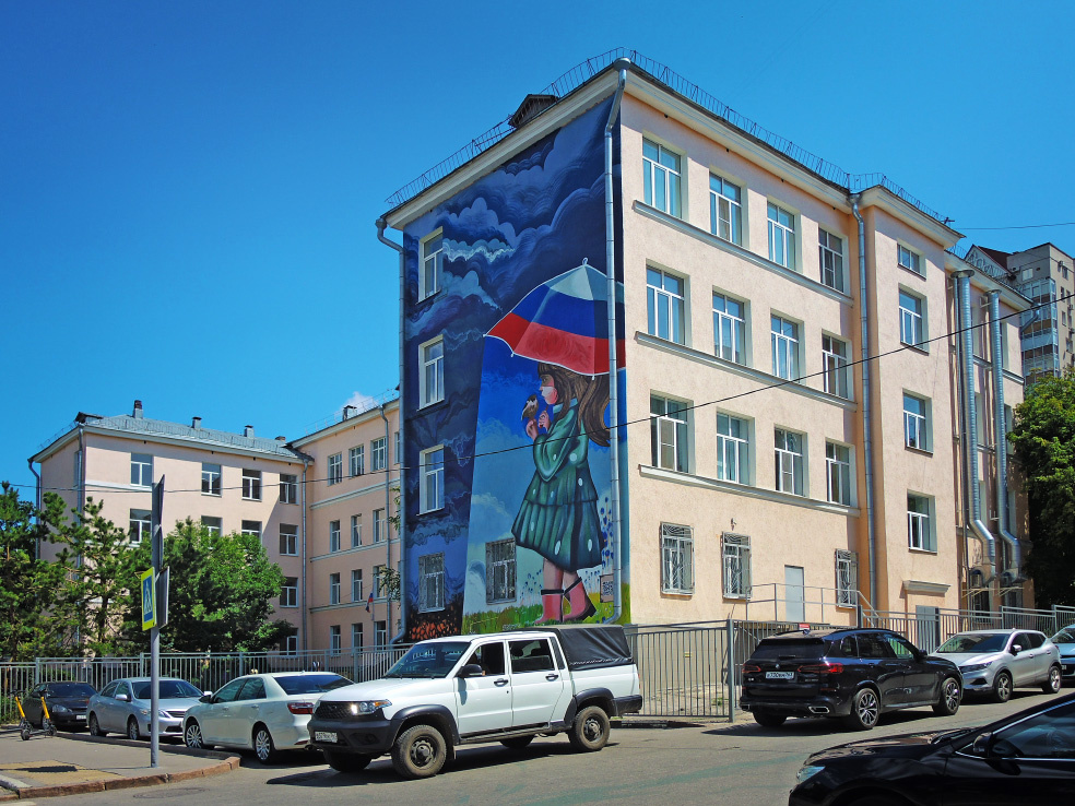 Продолжение серии обзоров образцов уличного искусства Самары. На этот раз хочу развить вчерашнюю тему. В предыдущей публикации показал выставку работ двух самарских уличных художников - Андрея ЧЖНС и Дениса Вертиго. Сейчас по городу можно найти несколько фасадов, украшенных их «официальными» рисунками. Один из них и хочу показать. Волжский проспект, дом 49 (спуск улицы Лесной, остановка общественного транспорта «Первомайская»). Здание Самарского спортивного лицея. Рисунок на одном из фасадов этого здания был создан весной 2023 году. Очевидно, по заказу учебного заведения. Торжественное открытие приурочили к Дню Победы. Мероприятие прошло в рамках международного фестиваля антифашисткой песни «Гитары в строю». На мой взгляд, получился отличный пример творческого подхода к теме патриотизма. С одной стороны, мысль совершенно чёткая и однозначная. С другой - образ сделан не прямо «в лоб», а имеет художественное осмысление. Ссылка на обзор выставки работ этих двух авторов. Подборки с различн