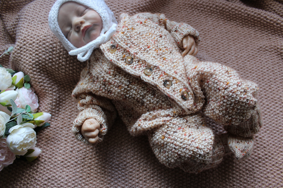 Всем привет! Я снова к вам с готовой работой, на этот раз я связала комбинезон регланом. На самом деле мне больше нравится вязать регланом и это у меня лучше получается. Пряжа у меня бюджетная- Nako bebe color, в составе 100% акрил, но я не считаю что это плохо для детских вещей. Есть дети у которых аллергия на шерсть, а чистый меринос довольно дорогая пряжа. Получился у меня 62 размер, пока мне сложно на глаз определить размер, поэтому я примеряю все на свою куклу. У комбинезона манжеты с большими отворотами, потому что мне это нравится. Я не вяжу вещи на вырост, тем более с комбинезоном это сделать сложнее. Штанишки можно и на вырост, а вот в комбинезон ребенок просто перестанет помещаться. Рисунок выбрала простой, так как ещё не до конца уверена в своих силах. На самом деле я люблю жемчужный узор и не вижу ничего страшного в том что в последнее время постоянно его использую. Следующий комбинезон я планирую более сложным чем этот и в скором времени обязательно начну его вя