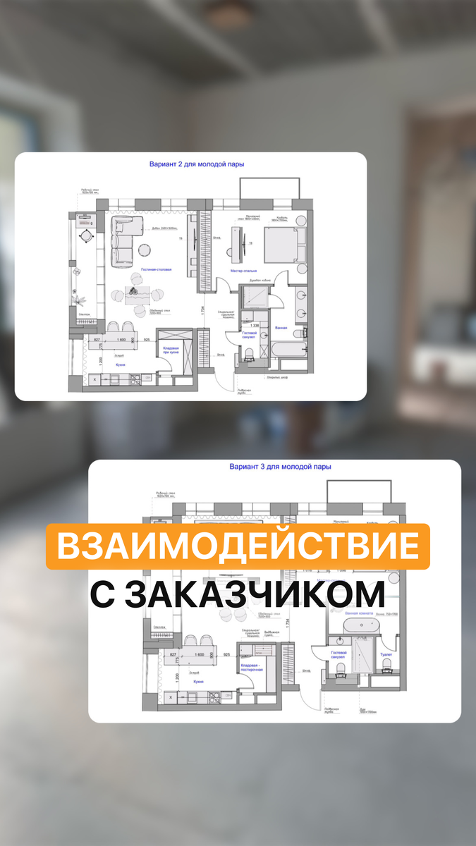 Друзья,сегодня хотим Вам рассказать с чего начинается взаимодействие с заказчиком 🙌🏻 Начинается все с выбора планировки квартиры И сейчас покажем пример вариантов, которые мы недавно готовили для клиента. @prorab_fedor ☝🏻