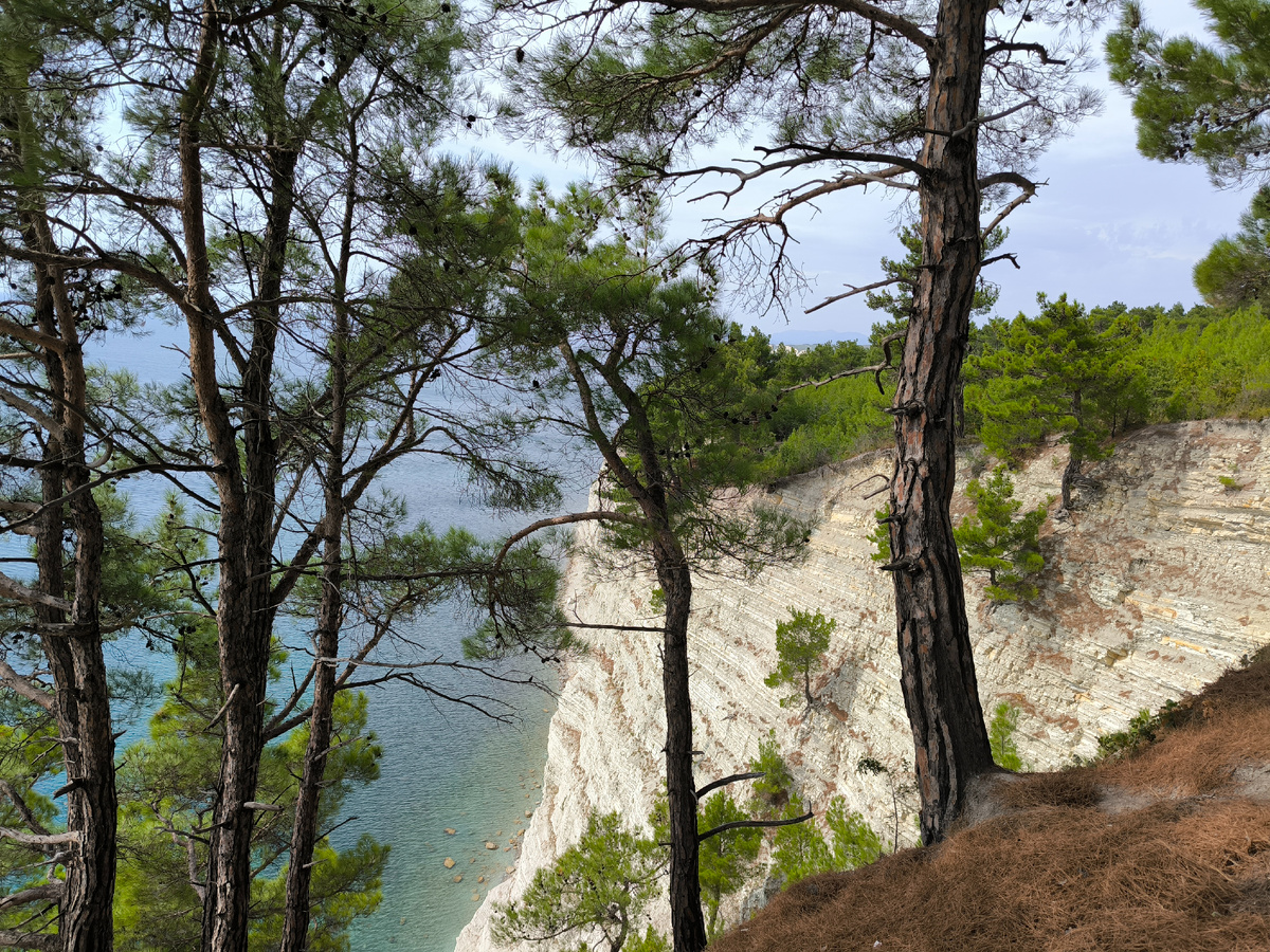 Сама смотровая площадка — это обрыв. По-другому это и не назовешь, она даже не огорожена от слова совсем. Просто лес и земля обрываются в один прекрасный момент и открывают вид на бесконечное голубое море. Это прекрасно. Честно, сначала, когда я это увидел, то просто стоял и наслаждался видом минут пять точно, прежде чем вообще решиться подойти к краю. Знаете. Я высоты не боюсь, насколько себя знаю. Вот от слова вообще, могу стоять на крыше и наблюдать красоты, но тут. Другое.