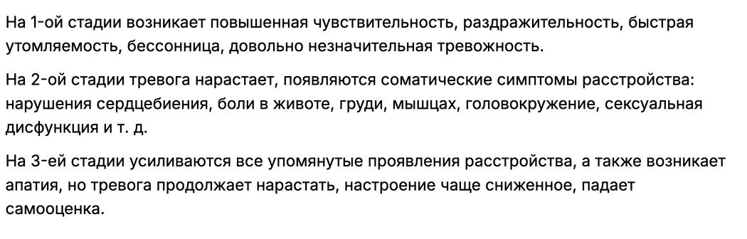 При тревожно-депрессивном расстройстве, имеет место быть, сочетание, как депрессивного, так и тревожного компонента, но как правило, ни один из них не преобладает в достаточной мере. В МКБ 10 пересмотра - это расстройство, называется "смешанным тревожным и депрессивным расстройством". В результате совокупности данных симптомов, человек начинает испытывать перманентное, а иногда безосновательное чувство тревоги и беспокойства, в различных сферах своей жизни, работа, интересы, отношения. Как пишет DSM -5, можно говорить о данном расстройстве, если у человека держится болезненное пониженное настроение от месяца и больше, и включает в себя не меньше 4 перечисленных симптомов: Выделяют три основные стадии развития ТДР. Одна из главных опасностей тревожно-депрессивного расстройства, связана с повышенным суицидальным риском, поскольку при глубоком состоянии депрессии, людей посещают мысли о самоубийстве. Суть в том, что при обычной депрессии, слабость и сниженная энергия в этом плане, спасает
