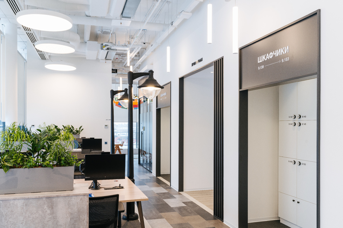 Мы разработали уникальный дизайн и помогли построить новый офис для крупной международной компании в БЦ «Алкон-2». Этот проект стал ярким примером того, как современное пространство может сочетать функциональность, эстетичность и атмосферу комфорта. В основе концепции офиса лежит образ уютного европейского города. Кольцевой коридор словно главная пешеходная улица, вымощенная тротуарным камнем. По обеим сторонам коридора расположены скамейки для отдыха, уличные фонари и зелёные насаждения, которые наполняют пространство свежестью. Озеленение живыми растениями не только освежает интерьер, но и создает приятную атмосферу. Фонари регулируют теплоту и яркость света в офисе. Помещения вдоль коридора оформлены как фасады домов различных стилей, с вывесками и козырьками, каждый из которых обладает уникальным дизайном и подсветкой. Здесь можно увидеть элементы, напоминающие кафе, входы в жилые дома и витрины магазинов – все то, что создает атмосферу настоящего города. Конференц-зал предст