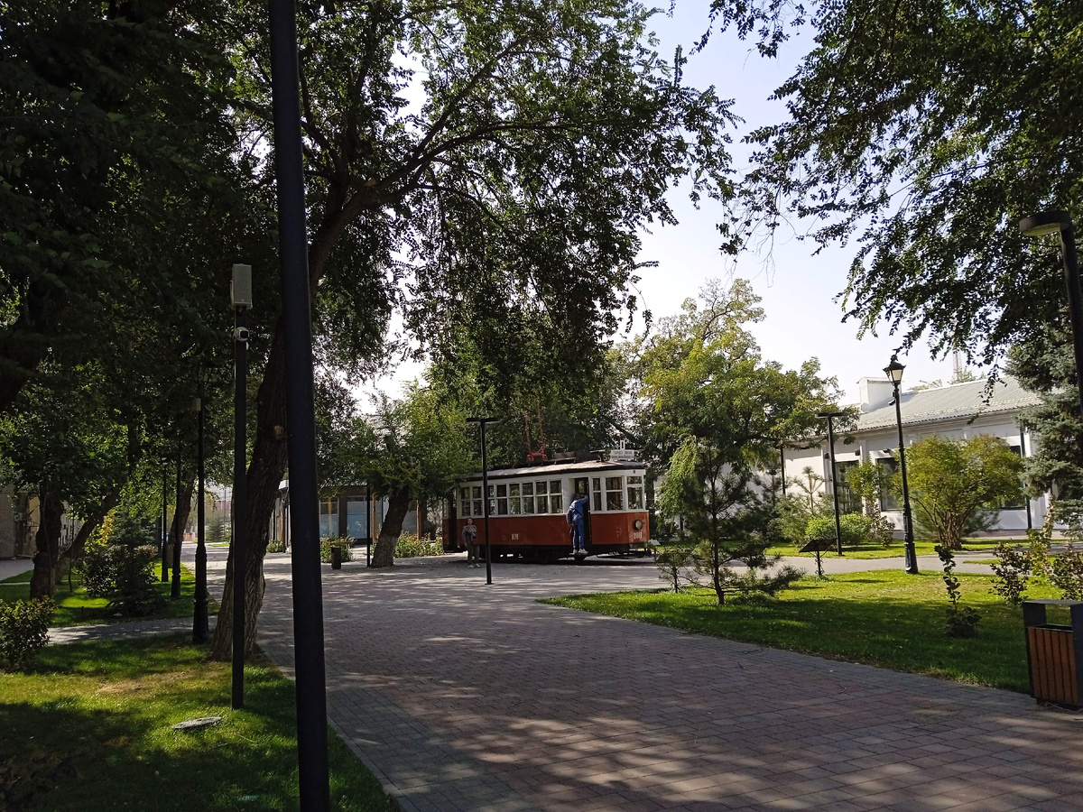 "Памятник Царицынскому трамваю" (Памятник трамвайному вагону серии "Х") в Комсомольском саду, Волгоград