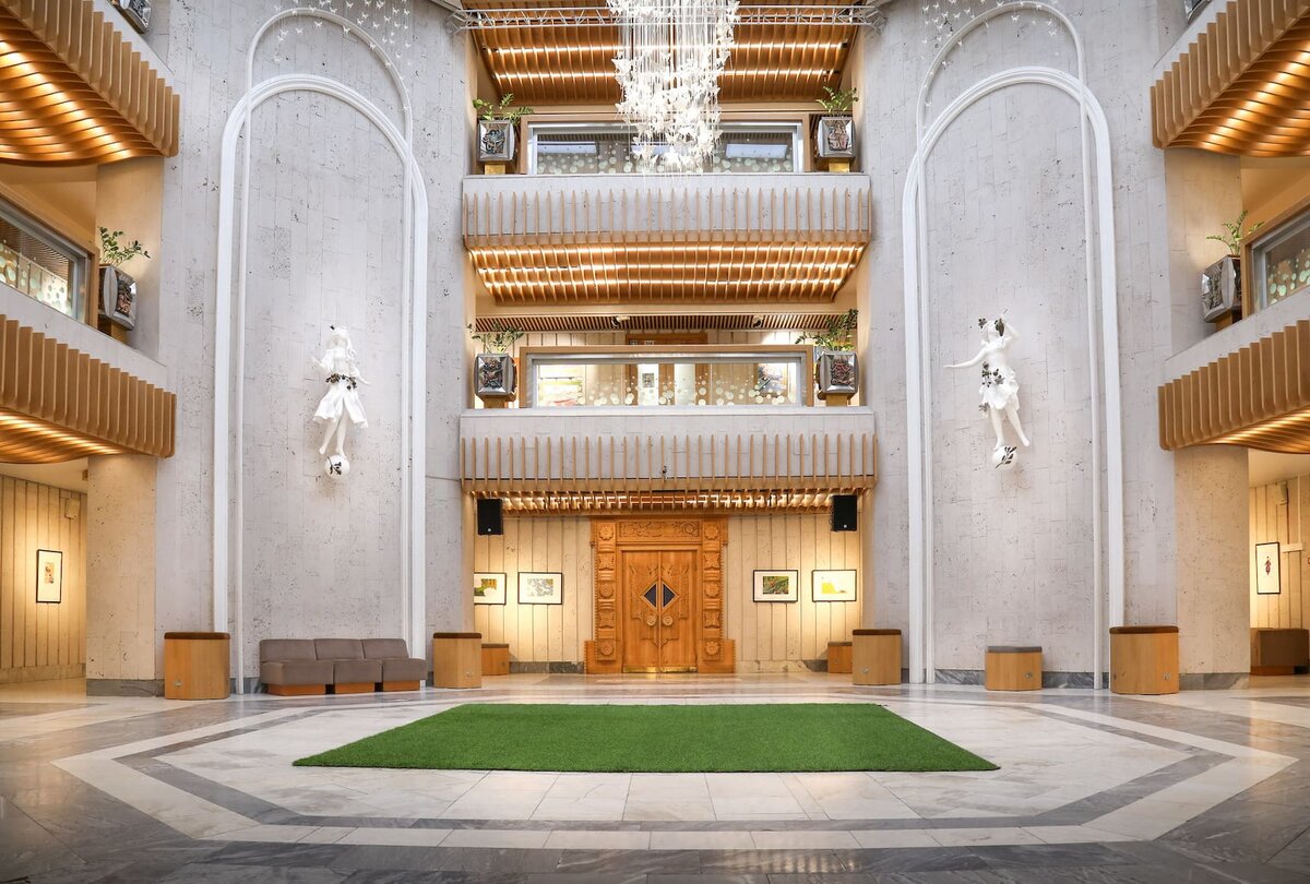 Здание библиотеки вы увидите как только выйдете из метро. И если снаружи оно выглядит довольно строго, то внутри вас ждёт необычное пространство: вход в вестибюль украшают стильные подсвеченные колонны, на стенах фойе силуэты деревьев. У главного входа вы найдете стеллаж книговорота, он же буккроссинг, где каждый может оставить или взять книгу. Главный выставочный зал в окружении балконов этажей, грандиозная люстра, стены библиотеки как пространство галереи для многочисленных выставок. Вернуть библиотечную книгу можно в специальный “постамат” в любое удобное время у входа.
