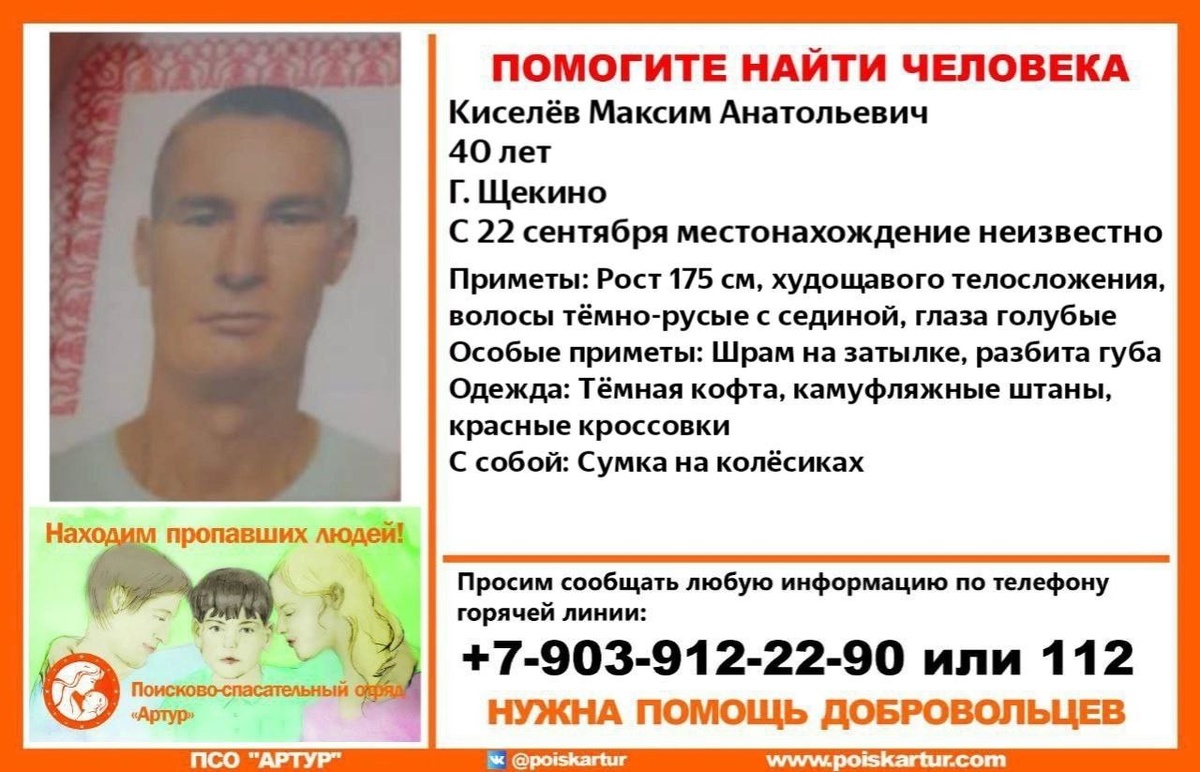 #КИСЕЛЁВ #МАКСИМ АНАТОЛЬЕВИЧ.1984 гр 40 лет г. Щекино тульская область Дата пропажи: с сентября 2024 года. 22 .09 ушол с общежития