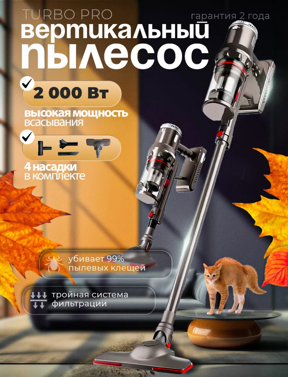3. Универсальность. Вертикальный беспроводной пылесос способен справляться с разными типами поверхности — от ковров и ламината до плитки и паркета. Модели с набором насадок позволяют легко чистить не только полы, но и мебель, шторы, углы и даже салон автомобиля.