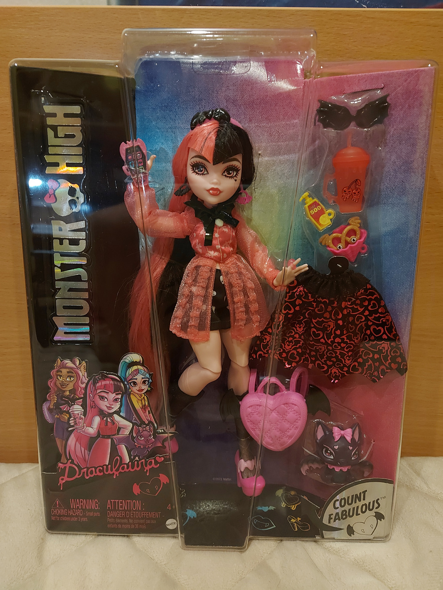 К очередному перезапуску Monster high я отношусь хорошо. Старый бренд уже все равно полноценно не вернется, а новый может предложить свои интересные фишки. Например, хотья и гордый обладатель 7 Дракулаур первого поколения, она никогда не была моим любимым персонажем. Я, скорее, фанатка Клодин. Но в новом поколении Дракулаура - общепризнанная звезда. У нее наибольшее количество удачных выпусков, и народ ее разбирает охотнее всех. Меня эта мания тоже не обошла стороной. Достать первую базовую было целым квестом. Давно я не видела такого ажиотажа на игровушек. В первые три волны на Аmаzоn я просто не успела. К тому моменту, как я узнавала о ее наличии, Ула уже заканчивалась. Я даже всерьез задумывалась брать у перекупов по завышенной цене. Но, хвала жадности Маттел, они выпустили очередную партию, и я наконец-то успела урвать свою. Ожидания после такого от этой куклы у меня были космические. И я рада, что в общем, они все же оправдались. Со вторым выпуском Дракулауры такого уж