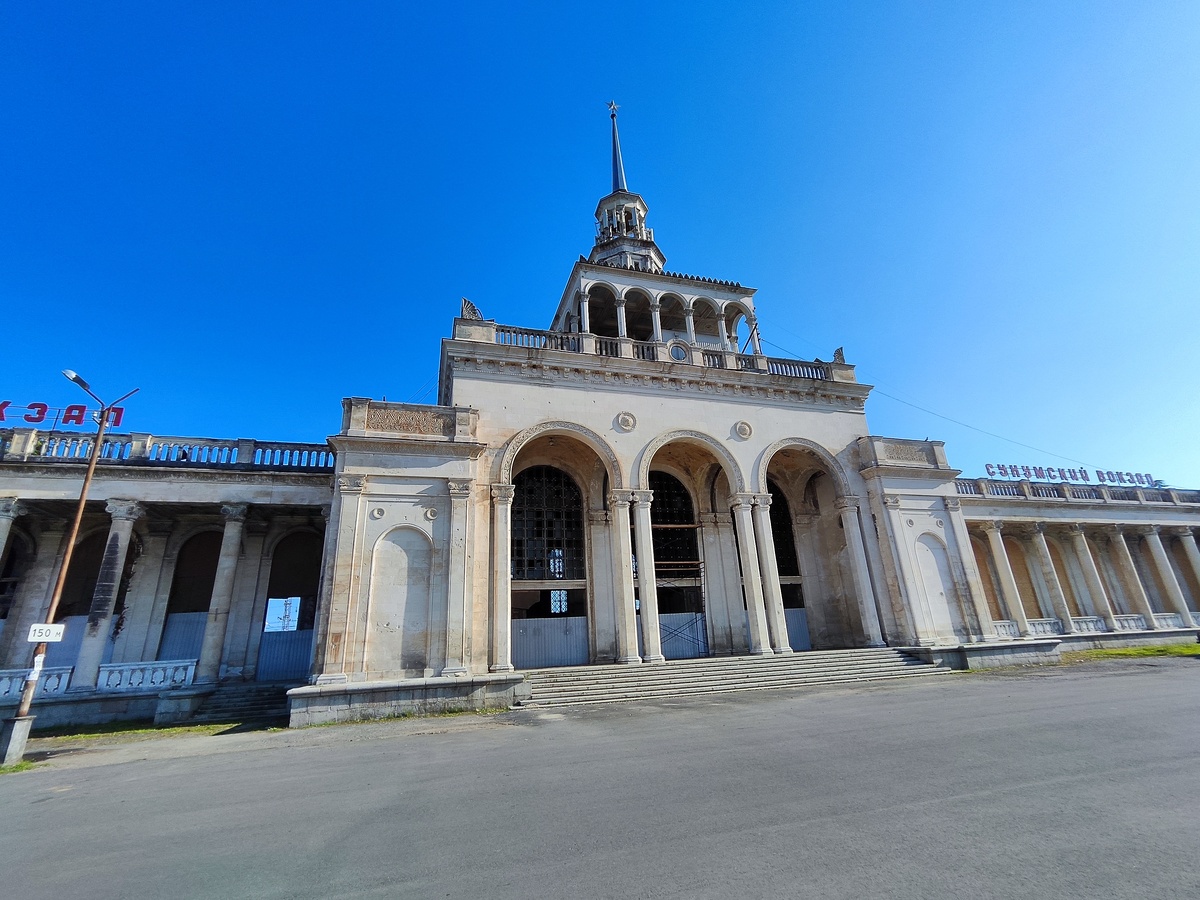 Это, несомненно, одно из красивейших зданий столицы Сухуми, которое притягивает к себе людей. Но не своей красотой, а потому что им ехать куда-то надо. Здание функционирует частями. В чем специфика железнодорожного вокзала в столице Абхазии, и какого расписание на автобусы?
