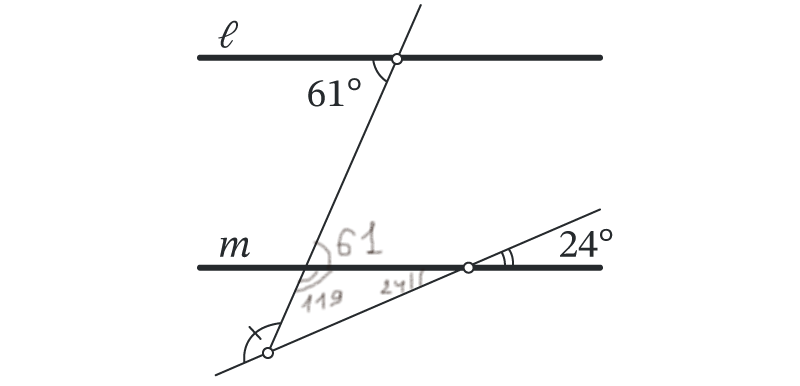 Прямые ℓ и m параллельны. Найдите величину угла, отмеченного дужкой с чёрточкой. Все что могли сразу вычислить, вычислили. Ну а внешний угол равен сумме 2х внутренних. 119+24=143 Ответ: 143 Другие задачи раздела