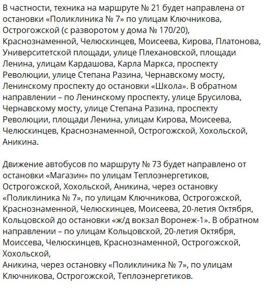 В Воронеже изменится схема движения автобусов №21 и 73. Об этом рассказали в пресс-службе городской администрации.