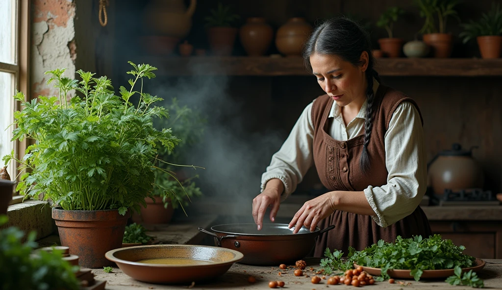 Представьте себе: хозяйка готовит простую похлёбку из листьев и корней борщевика. В те времена такие супы имели кислый вкус, ведь в них часто добавляли закваску. Хотя эта похлёбка не имеет много общего с тем борщом, который мы знаем сегодня, именно она заложила основы этого блюда.