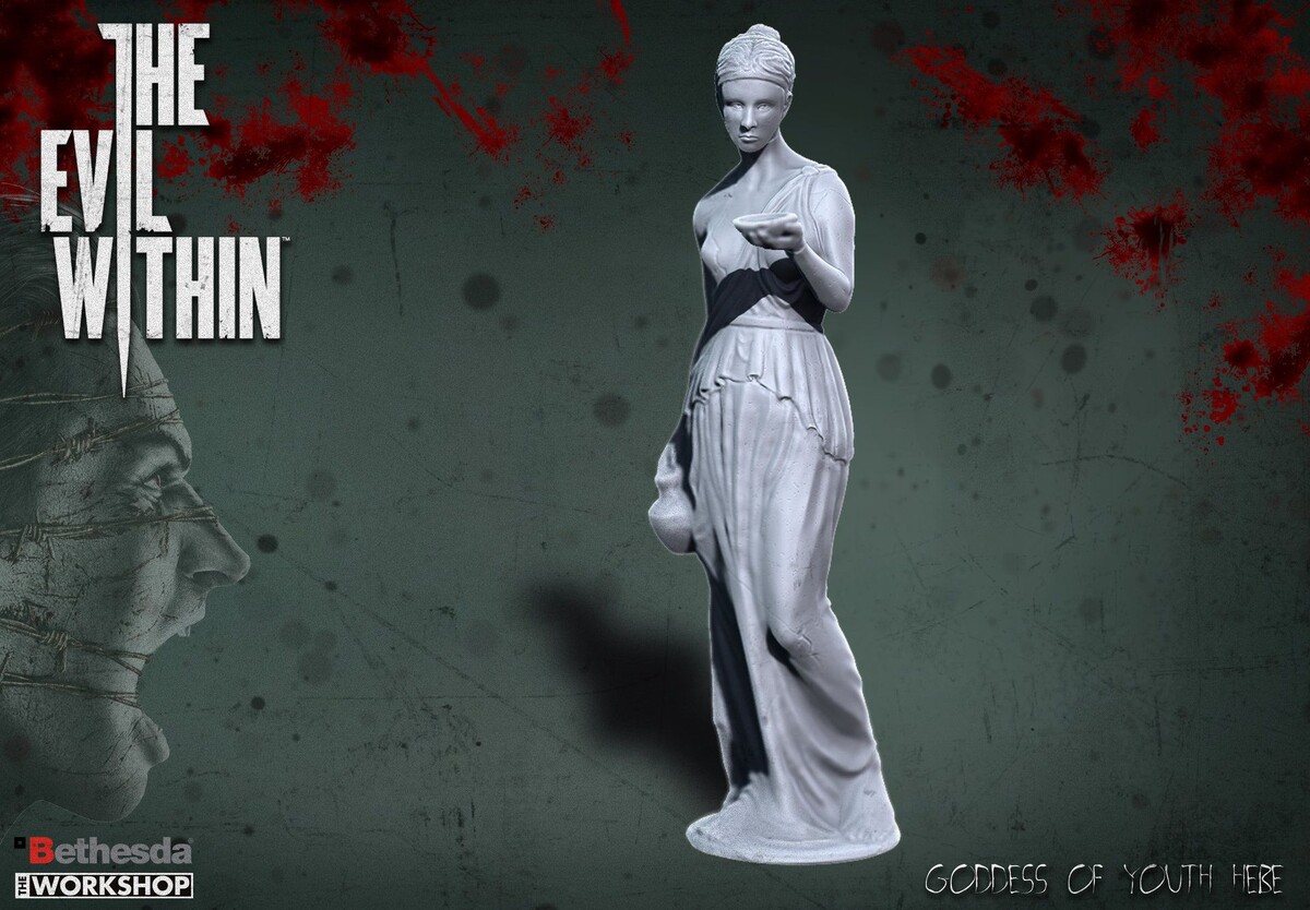 - Ключ № 21: Пройдя через следующие кривошипные ворота, Себастьян упадет в воду. Придерживайтесь правой стены и продолжайте движение, пока не достигнете области, где есть водопады. За одним из ручьев находится полускрытая статуя.
