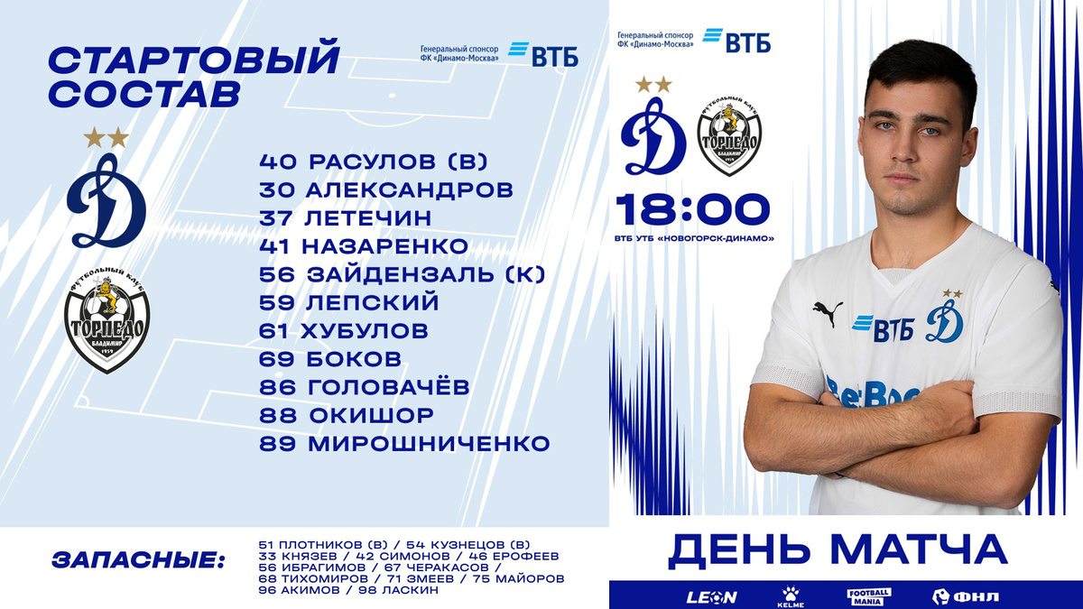 Стартовый состав Динамо-2 на матч с Торпедо Владимир