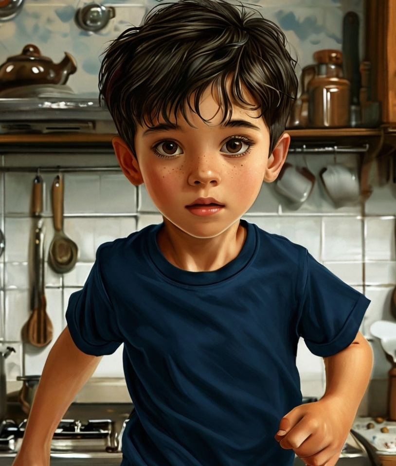 Вблизи почудилось какое-то движение. Малыш закончил есть и шумно облизывал пальцы. Рядом с ним показался мальчик постарше, примерно одного возраста с Даней. Он обнял маленького за плечи и что-то спросил его, назвав именем Мики. — Котлэт, — ответил Мики, и показал пальчиком на портал. Даня уже держал наготове вторую котлету и йогурт. Паренек из двадцать первого века, который знал о войне только по книгам и кино или из новостей, мгновенно все понял. Он каждой клеточкой своего тела ощущал ответственность и важность миссии, неизвестно кем на него возложенной, и собирался ее до конца. Малютка уже опять протянул ручонку, и снова получил котлету, следом в дыру ушла бутылка с йогуртом, ее подхватил старший мальчик. Даня уже мчался на кухню, включая свет везде на своем пути. В комнате он решил оставить темноту, догадываясь, что яркий свет, исходящий из портала, может привлечь к себе ненужное внимание на той стороне. Даня бежит на кухню Даня хватал все, что подворачивалось под рук