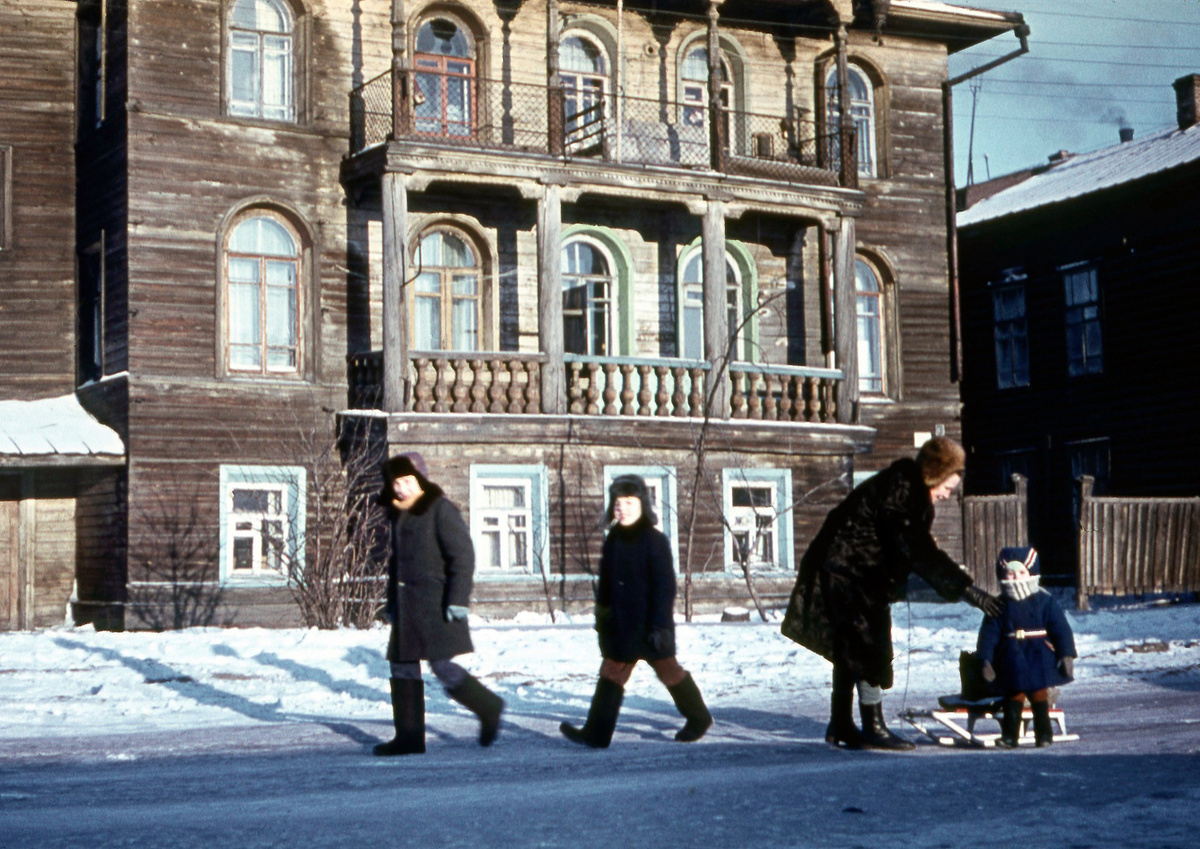 На снимке дом на улице Гоголя, который предположительно был построен около 1832 года. Эта дата указывается в некоторых источниках, но подтверждения не имеет. Достоверные источники фиксируют дом только с 1872 года и тогда им владела семья дворян Саблиных. Изначально дом был в два этажа, а к 1902 году третий этаж надстраивает уже новая владелица - крестьянка Евдокия Макаровна Гусева. Исторически улица в этом месте называлась Владычная слобода, которая в годы Советской власти вошла в состав Калашной улицы, а уже в 1959 году Калашную переименовали в Гоголя. Сам же дом был уничтожен пожаром в 1993 году и сейчас на его месте новодел, воспроизводящий старый дом.