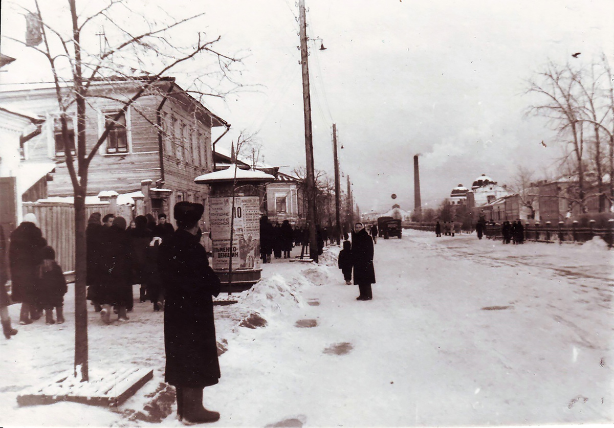 Тумбы для афиш или афишные столбы, если использовать их изначальное название, для дореволюционной Вологды были одним из визуальных элементов, который сохранялся потом ещё долгие годы. На подборке снимков 1940-х - 1960-х годов эти конструкции попали в кадр и довольно гармонично вписываются в виды старой Вологды. На первых двух фотографиях современная улица Мира, на третьей - Ленинградская, а на последней - улица Ленина.