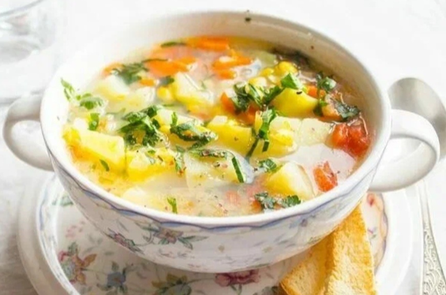 Чтобы приготовить картофельный суп с зажаркой на четыре порции, вам понадобятся следующие ингредиенты: * 1 луковица; * половина моркови; * 5 картофелин; * вода — 1200 мл; * куриное яйцо — 2 шт.; * растительное масло для зажарки. Процесс приготовления: 1. Наполните кастрюлю водой и доведите до кипения. 2. Добавьте в кипящую воду нарезанную картошку и варите 10–15 минут. 3. Пока картошка варится, сделайте зажарку: мелко нарежьте лук и натрите морковь. Обжарьте их на растительном масле до золотистого цвета. 4. Добавьте зажарку в кастрюлю с супом и перемешайте. 5. Взбейте куриное яйцо и добавьте его в суп, постоянно помешивая. 6. Варите ещё 2 минуты, затем снимите с огня и дайте настояться. Приятного аппетита!
