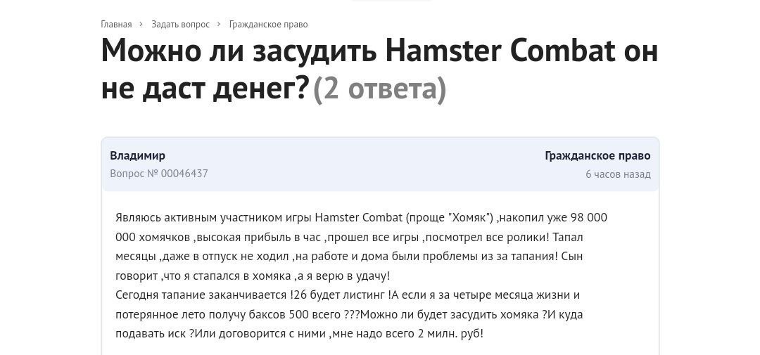 🐹Можно ли засудить Хомяка, если раздадут всего по $500 👆