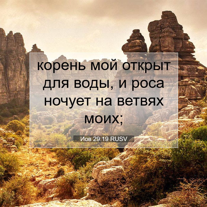 «Корень мой открыт для воды, и роса ночует на ветвях моих». Некоторым образом стих 19 напоминает нам обещание благословения в Пс. 1. Псалмопевец провозглашал, что всякий утешающийся законом Божьим, «будет, как дерево, посаженное при потоках вод, которое приносит плод свой во время своё и лист которого не вянет; и во всём, что он ни делает, успеет» (Пс. 1:3).
