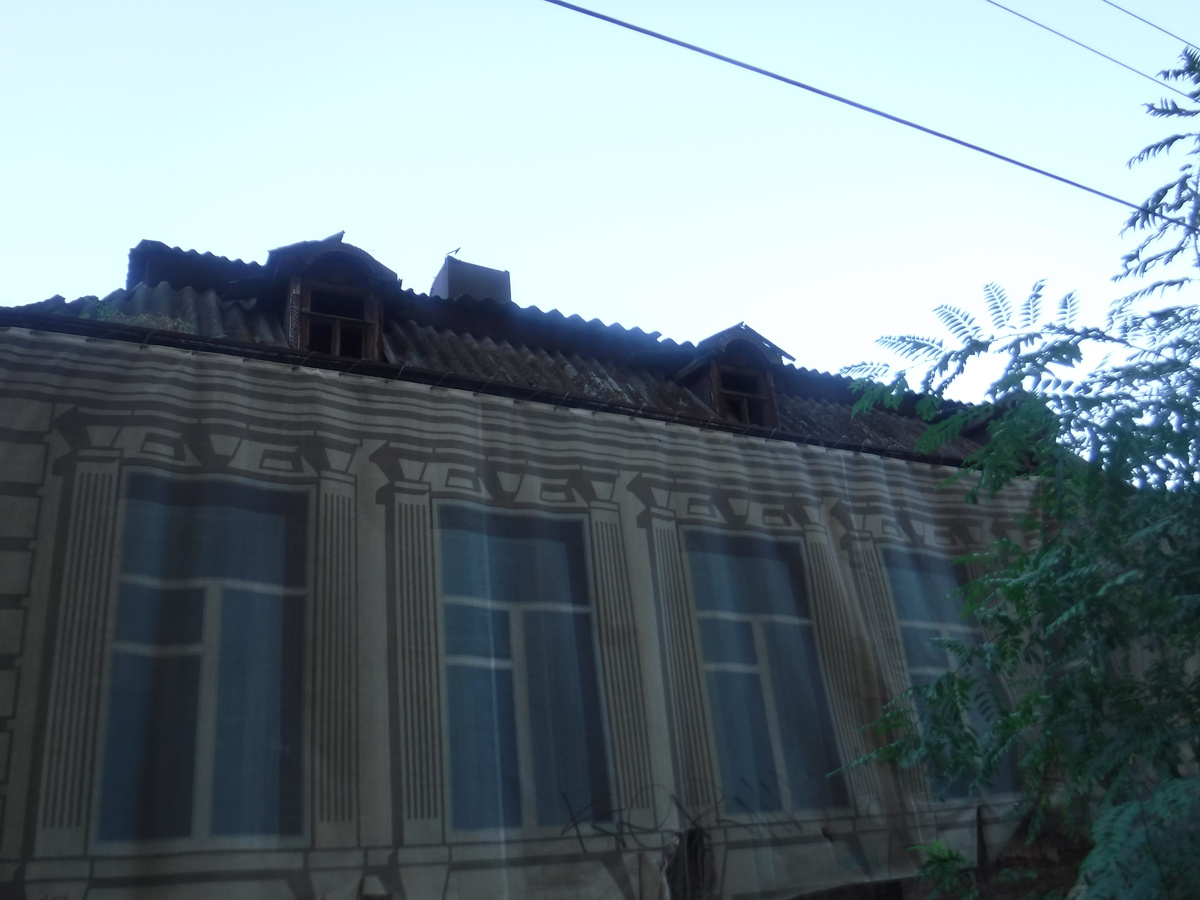 Этот дом давно занимал мое внимание. Много раз, проезжая по новопоселенской улице Варфоломеева ( бывшая Шестая улица), я подумывал заглянуть в него. Но истинное лицо ( фасад) дома давно скрывала маска-драпировка с изображением очертаний строения , вызывающая в памяти похожий маскарад с "благополучно" стертым с лица земли домом бывшей общины сестер милосердия на улице Тельмана. Удавалось только заглянуть за драпировку. Но там ничего обнадеживающего не обнаруживалось. Дверей там не было, а ворота во двор дома всегда были надежно закрыты. Однако сегодня совершенно случайно "мне предоставился случай" побывать внутри этого таинственного строения. С учетом того, что крыша с чердаком-мансардой домика была старой, и резные начердачные надстройки были в ветхом, но оригинальном виде, мне казалось, что внутренности дома должны скрывать что-то интересное. Но увы, почти все интересное было "вынесено" до нас... В отличие от почти соседней библиотеки им. Чкалова - никакой лепнины, никаких изразцов