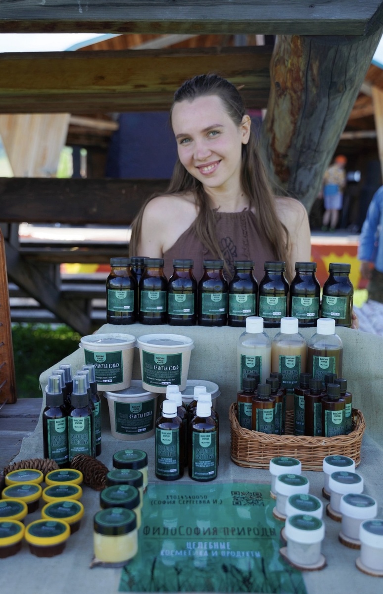 Не так давно позиция моя изменилась. Несколько месяцев назад я все же решила попробовать пожить на земле на Алтае и открыть свой магазин натуральной косметики. Я придумала название бренда, поехала в село Мульта (республика Алтай) в качестве волонтера в родовое поместье. В свободное от работы время собирала травы и училась делать первые зольные шампуни, гидролаты и мази. Спустя месяц меня пригласили на фестиваль «Возрождение» в Солоновку на ярмарку со своей продукцией, и я поехала. Случайно я познакомилась с Дмитрием Романовым, предпринимателем и одним из основателей семейного производства натуральной косметики «Мыловарня Романовых». Он был спикером с лекцией «Финансовые потоки в родовых поместьях». Увидев мой потенциал, он пригласил меня на свое выступление, и я согласилась.