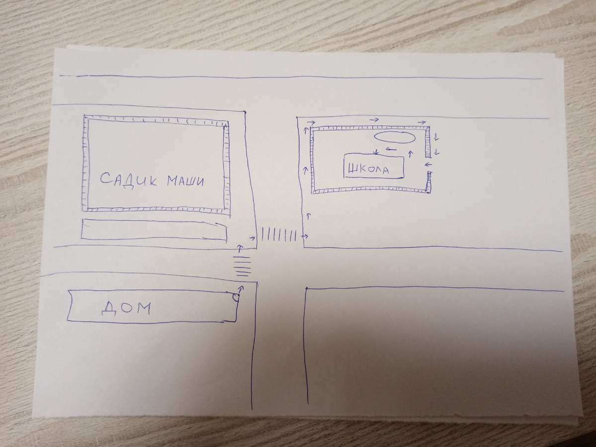 Вот так надо идти до школы, по пешеходным переходам, да?