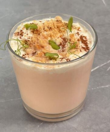 Сахар 20 г ✅1. Из моркови выжать сок с помощью соковыжималки или натереть ее на мелкой тёрке и отжать сок через сито или через ткань 2. Соединить в чаше блендера сок моркови с остальными ингредиентами, кроме печенья, и взбить до однородной массы. 3. Печенье растолочь. Вылить морковную массу в стакан, сверху посыпать печеньем. Можно дополнительно посыпать корицей
