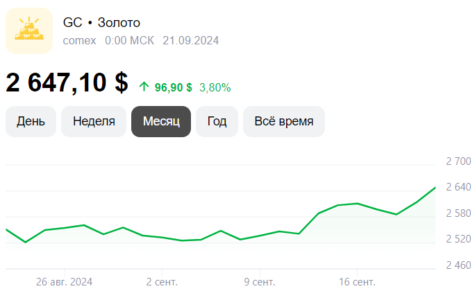 Стоимость золота впервые в истории превысила $2650 за унцию