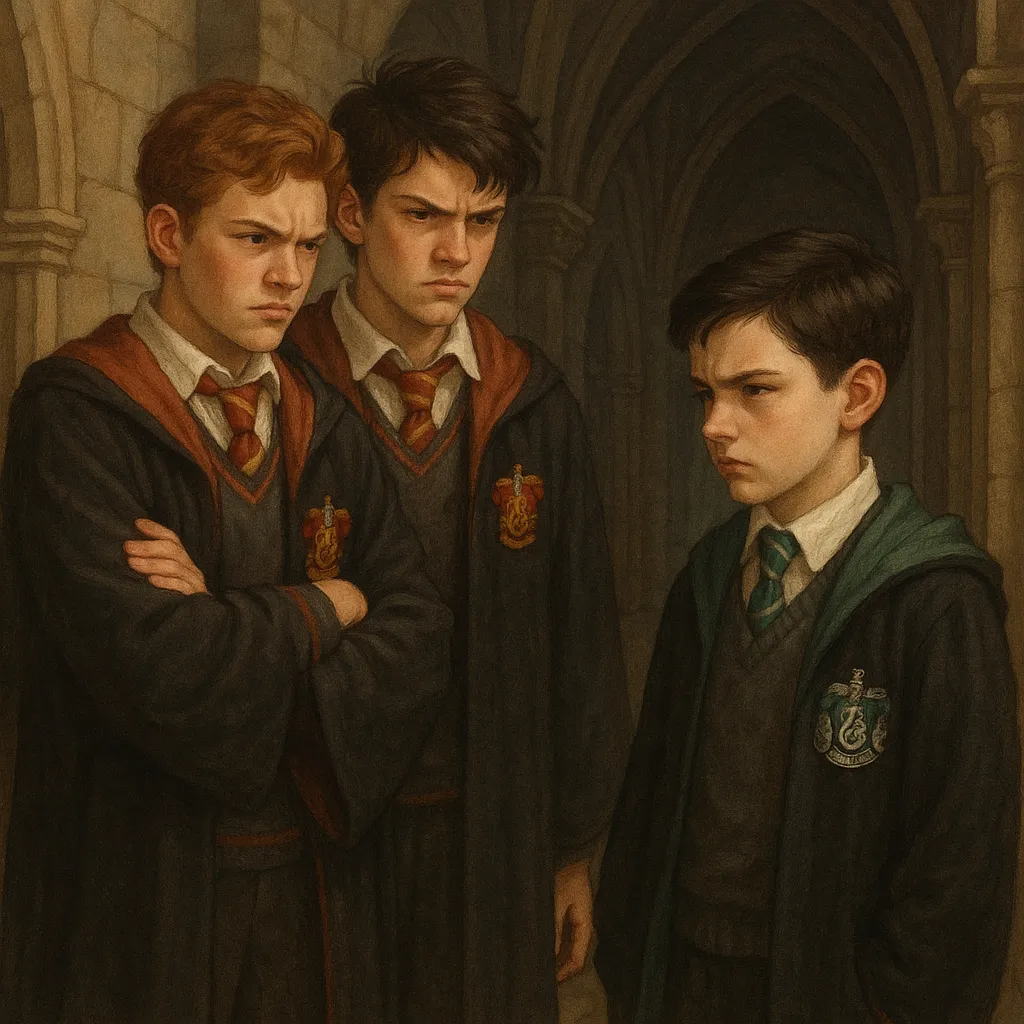 Деннис завернул за угол и увидел двух однокурсников, держащих мальчишку с третьего курса Слизерина.