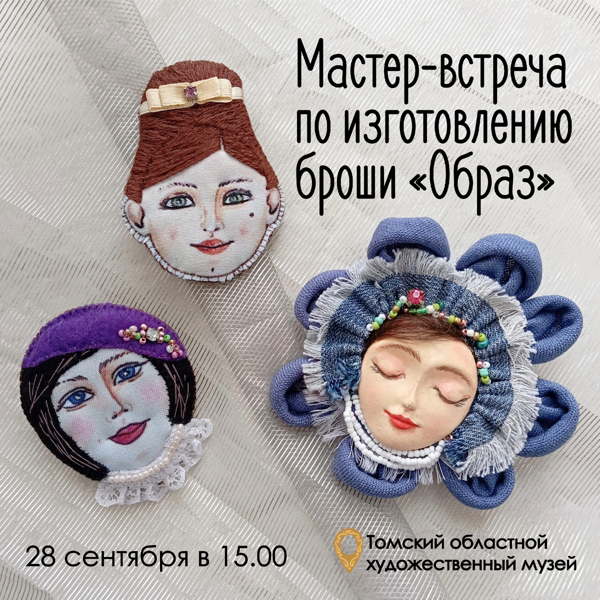 Ольга Николенко художница - кукольник проведет мастер-встречу по изготовлению броши "Образ" (с использованием личика термопечать). 28 сентября в 15:00. Лекторий.