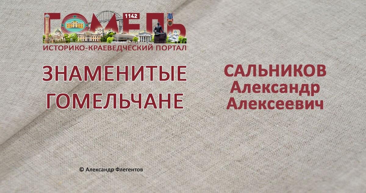 Александр Алексеевич Сальников (07.08.1959, Гомель) — белорусский художник. Окончил Белорусский театрально-художественный институт (1990). С 1994 года преподаёт в Белорусской академии искусств. Работает в станковой и монументальной живописи. Среди произведений: композиции «Гимн и реквием» (1996), «Подари мне цветы» (1997), «Человек с соколом», «Затмение» (обе 1998), «Рождение мелодии», «Пробуждение», цикл «Небо и земля» (все 1999); фрески «Музыка родного края» в детском санатории «Беларусь» в к Друскининкай (Литва, с А. Пушкиным) и др. Г.А. Фатыхова Энциклопедия Регионы Беларуси. Гомельская область. Том 3. Книга 2. 2013