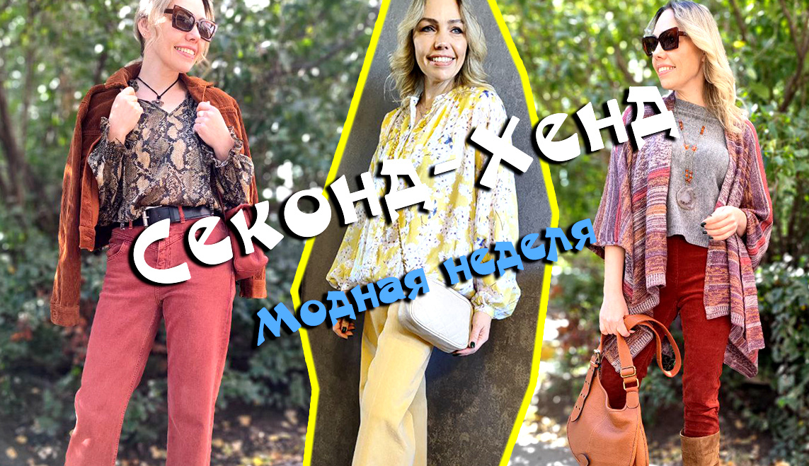 В цветах осени. ---------------------- Всем привет! Меня зовут Ирина, добро пожаловать на мой канал! Сегодня покажу образы с одеждой из секонд-хенда, которые носила на прошлой неделе. ---------------------- Понедельник ↓ Солнечный образ с восхитительной объемной блузкой из лимитированной коллекции "H&M". Сочетаю с желтыми джинсами, сандалиями и бежевой сумочкой на цепочке. ---------------------- Вторник ↓ А сегодня образ цвета неба 😉 Бохо блузка с дизайнерской вышивкой-совой соседствует с широкими джинсами. Взяла сюда расслабленную сумку-мешок из коричневой кожи в тон элементов в вышивке. ---------------------- Среда ↓ Этот образ – сама осень с еще где-то зелеными, где-то багряными листьями. Вы его уже видели в прошлой статье про осенние блузки. Накинула поверх рыжую вельветовую курточку. ---------------------- Четверг ↓ Сегодня серый монохром с серебристыми всполохами в виде лоферов и медальона. ---------------------- Пятница ↓ Сегодня надеваю черную основу в виде льняных широких брю