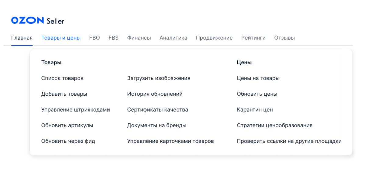 Функции личного кабинета селлера на Озон