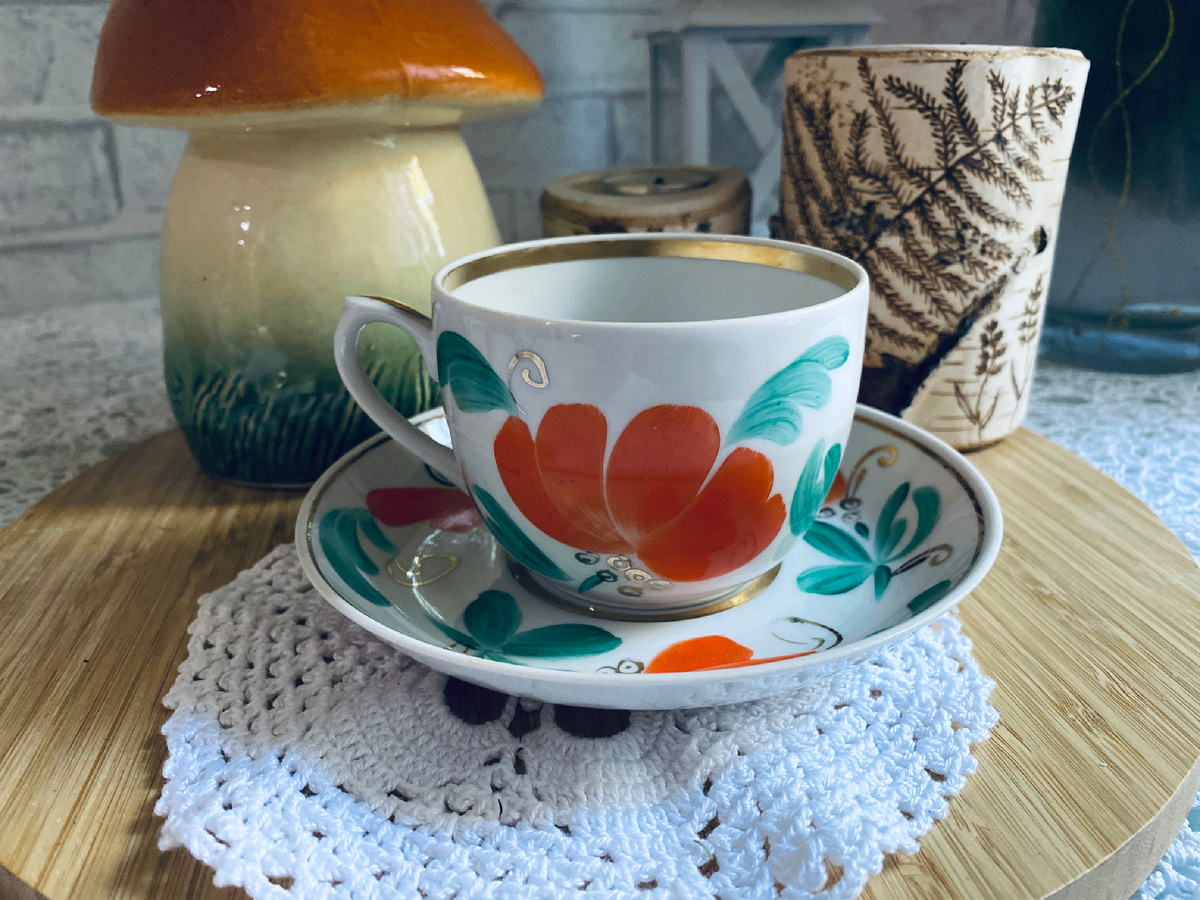 Я очень плодотворно провела свои деревенские выходные🫠 Так и просится на язык - никогда такого не было, и вот опять:-) Мы гостили у свекрови. И она еще до этой поездки говорила про фарфор своей свекрови, мол, где-то должны быть чашки. И, пока я эвакуировала ее гиппеаструмы с клумбы, говорит, сейчас искать пойдем. А я что? А меня два раза просить не надо, вы же знаете) Забегая вперед, скажу, что я целый ящик старой посуды забрала домой. Муж смотрел грустными глазами (Шо, опять?!), но завернул все хрупкое на совесть😁 Я всем стареньким новеньким уже начистила перышки и готова вам показать свои обновки. Чашки нашлись в количестве трех штук. Веселая роспись широкими мазками на форме Стандарт от Вербилок. Автор формы Шобанов А.И. А вот блюдце, увы, одно на всех. Вечером мельком полистала Авито на «авось, повезет», ничего не встретилось подходящего. Что ж, будем искать🔎 Зато есть сахарница. Очень уютная и теплая компания, мне кажется🌸 Прихватила себе в безвозмездное пользование чайни