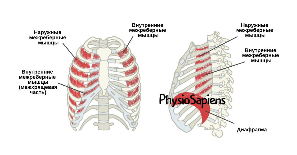 А помимо этого есть наружные и внутренние межрёберные мышцы, при попеременном сокращении которых грудная клетка поднимается и опускается, меняя объём, что также заставляет воздух входить и выходить из лёгких.