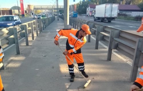 В Долгопрудном рабочие меняют ограждения и проводят уборку на дорогах округа