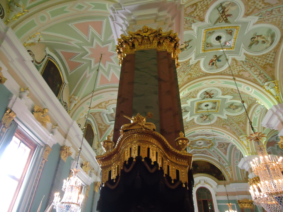 Петропавловский собор(Собор святых апостолов Петра и Павла) – православный храм на территории Петропавловской крепости в Санкт- Петербурге. Был возведён в 1712-1733 годах и является Усыпальницей династии Романовых, начиная с 1725 года. В 1703 году Петр I на берегу Финского залива заложил Петропавловскую крепость. Стремясь усилить главенствующее положение молодой столицы среди городов России, государь задумал постройку, которая была бы выше Колокольни Ивана Великого и Меншиковой башни. Новый храм должен был стать самым значительным сооружением столицы империи и находиться в самом сердце Петропавловской крепости. Первый эскиз крепости Петр I сделал сам под влиянием зарубежных впечатлений Великого посольства 1697-1698 годов. Строительство храма началось в июне 1703 года в день святых апостолов Петра и Павла (в настоящее время этот праздник отмечается 12 июля) на территории только что заложенной Петропавловской крепости. Освящение первой деревянной Петропавловской церкви состоялось в апрел