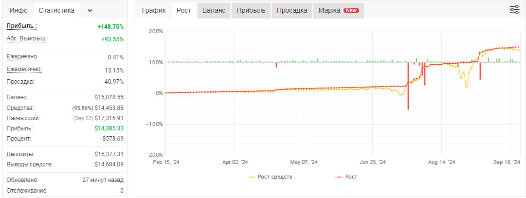 📈 Basket№1: +0,07%⭐️⭐️ 📈 Basket№2: +0,48% ⭐️⭐️ 🐳 StackBasket: +0,72%⭐️ 🦾 Stack R: +1,29%⭐️⭐️ ⚓️BalancedBasket: +00,00%⭐️⭐️ 🏆Победителем недели, стала система Stack R 🥳! ⚠️Волатильность на долларовых парах увеличилась относительно значений прошлой недели. Неделя в целом прошла под укреплением основных мировых валют относительно доллара США (за исключением японской йены, там, наоборот, ослабление к доллару). 💵Доходность систем StackBasket и Stack R продолжает радовать, за неделю прирост составил +0,72% и 1,29% соответственно! По системе Stack R на следующей неделе ожидаем закрытие сетки по паре AUDCAD, что даст хороший прирост в доходности. В целом неделя прошла штатно, сетки на долларовых парах закрывались быстро. Продолжается работа над ребалансировкой системы BalancedBasket, а так же над алгоритмом, работающим на криптовалюте💸! Думаю уже в скором времени на руках будут полноценные результаты тестирования, а там, возможно, и запуск 🚀. 📣Завтра так же запишу видео-отчет о те
