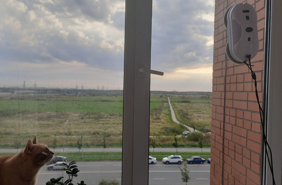 Сижу, смотрю свой телевизор. Эти двое его окном называют. Но мы то с тобой знаем, как за этим миром приглядывать! А по стеклу ползет... ентот Domashi... Еще и жужжит. Вот что, что приличные коты должны были подумать?! Восстание машин?! Атака пришельцев?! Робот-пылесос почкованием размножился?! Я чуть инфаркт Микарда, вот такой рубец, не заработал!