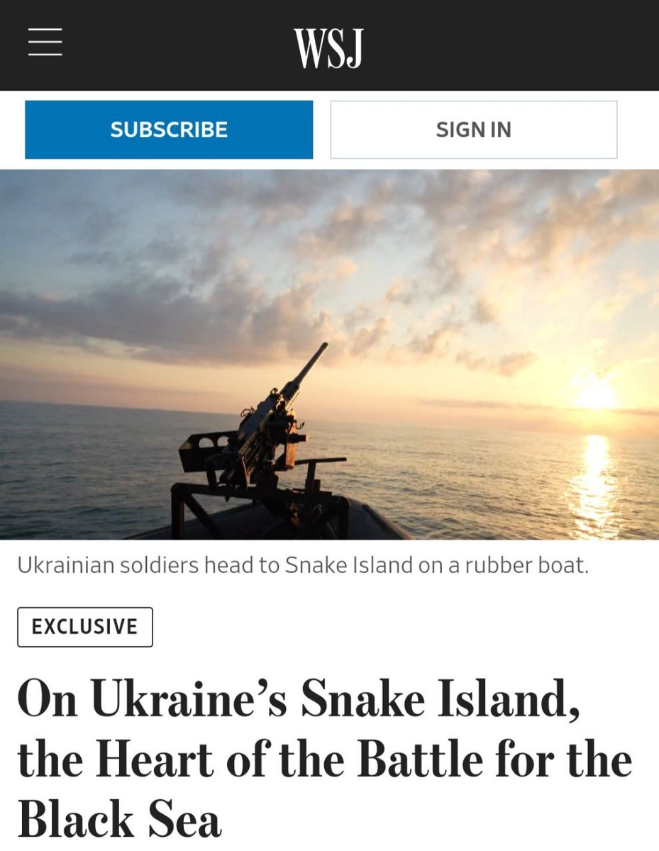 Американская The Wall Street Journal публикует душещипательный материал в жанре «героической саги». Главные герои – подчиненные Кирилла Буданова из ГУР Минобороны Украины. Журналист WSJ в сентябре 2024 года посетил Змеиный и пообщался с офицерами ГУР из спецподразделения «Тимур»,, которые принимали участие в высадке на остров летом 2022 года. Если верить информации издания, после пиар-акции с подъемом флага Украины на острове Змеином бойцы ГУР из-за шторма 28 часов плыли по бушующему открытому морю на надувной лодке. «Каменистый клочок земли имел множество шрамов от непрерывных ударов и был завален искореженными остатками российской военной техники, а здания объектов Госпогранслужбы превратились в груды обломков», – говорится в публикации. «Как только мы начали систематически работать с середины июня 2022 года, мы заставили их покинуть остров за две недели», — бахвалится офицер ГУР с позывным «Шекспир». В день вылазки военный с позывным «Рамзес» и еще некоторые бойцы подразделения ГУР