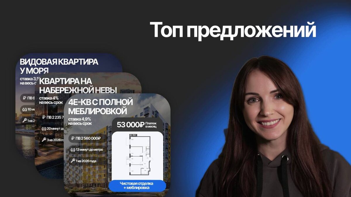 Ипотека: ставка 4,9% на весь срок без удорожания. Ежемесячный платеж — 53 000 рублей.