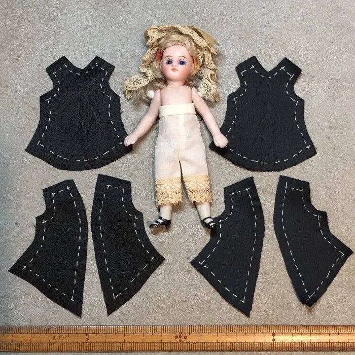 Фото с китайского сайта, мои пояснения и описания. Надеюсь, что все будет понятно. Думаю, что по данной выкройке можно сшить и мундир для куклы-мальчика, лично я с этой целью и рассматриваю данный мастер-класс, а то ходит у меня один усатый джентльмен голым 😅 Детали для жилетки. Можно подогнать эту картинку под размеры вашей куклы и распечатать. Можно перерисовать выкройку приложив лист бумаги к монитору. Если сомневаетесь в выкройке, то возьмите ненужную ткань средней плотности и сшейте сначала из нее. По крайней мере будет не жалко ее потом подкорректировать и выкинуть, если все совсем плохо станет. Я постараюсь снять это процесс в видео. Следующий этап - примерка. Если использовалась плотная ткань, типа искусственной замши, то обрабатывать края не нужно. Если в вашем варианте ткань сыпется, то нужно обработать детали перед сшиванием. На машинке - зигзагом, либо вручную обметочным швом. Сшиваем делали. При необходимости можно сделать выточки и застежку спереди. Ну и украшалки. В