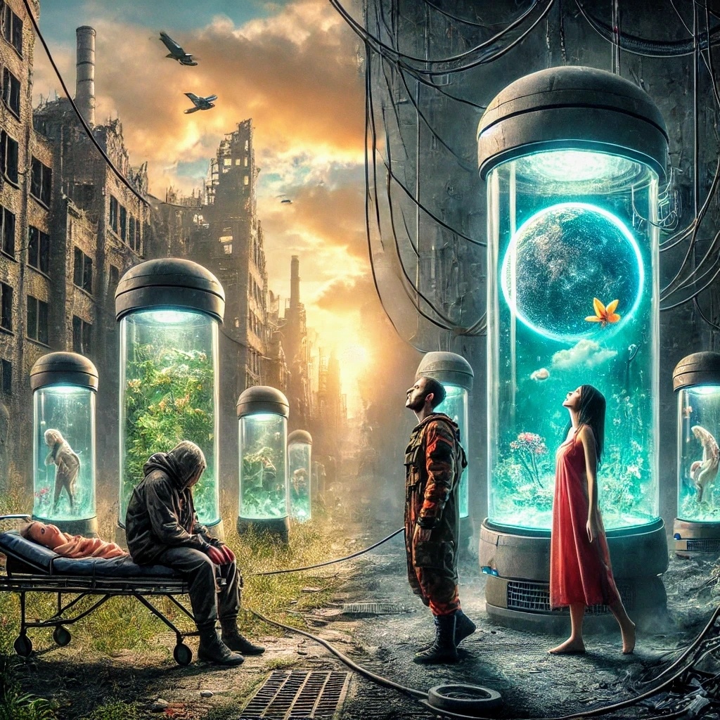 Мир погрузился в виртуальную реальность, названную "Эдем". Созданная высокотехнологичной корпорацией "VitaNova", эта система стала пристанищем для миллионов людей, сбежавших от суровых реалий. В "Эдеме" каждый мог стать тем, кем мечтал быть: богатым, успешным, красивым и влиятельным. Искусственный интеллект, поддерживающий каждый аспект жизни, заботился о всем — от погоды до настроения его обитателей. Люди жили в "капсулах", подключенных к системам жизнеобеспечения, а их сознание было полностью погружено в виртуальный мир.