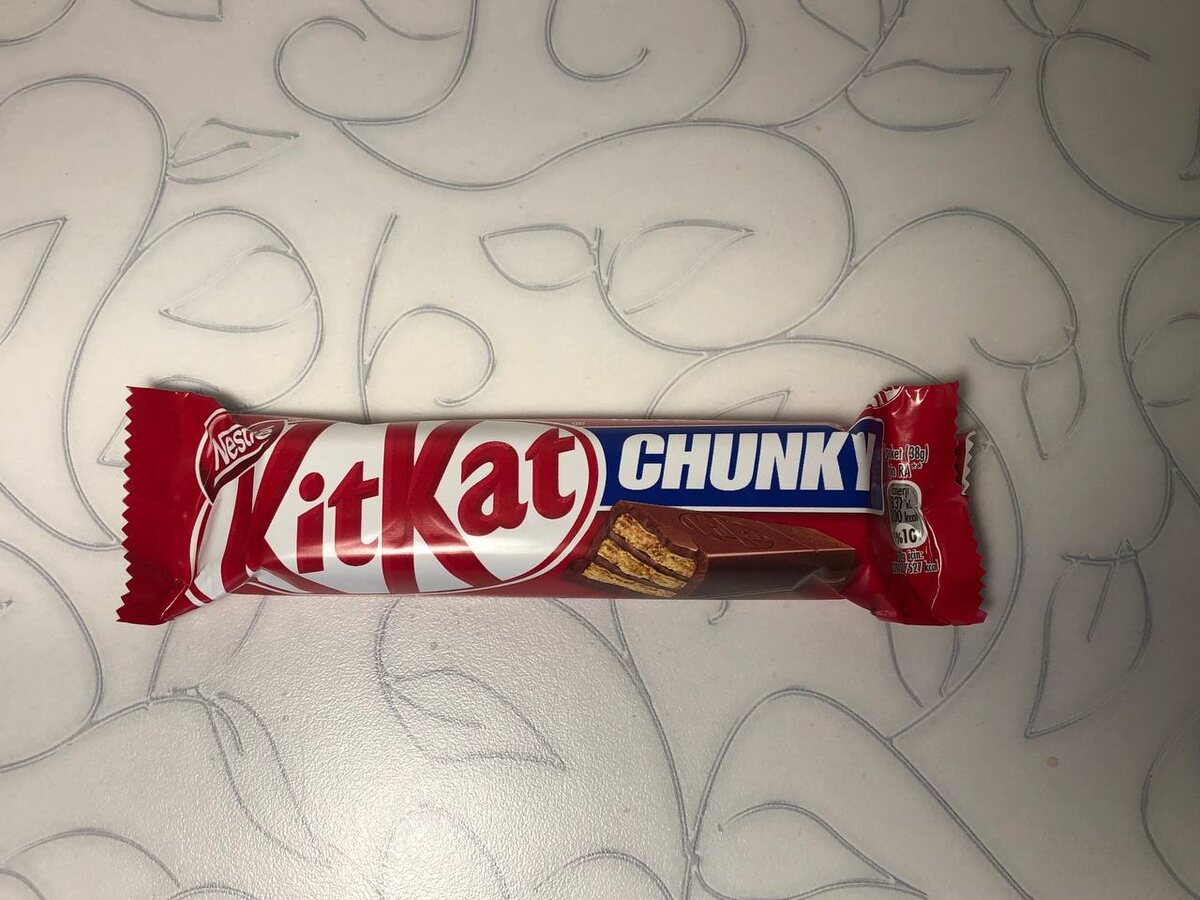 Захотелось чего-то сладкого, и во время прогулки по магазину я наткнулся на настоящее сокровище — Kit Kat Chunky. Я был очень рад, ведь уже давно не видел этого лакомства. Стоимость одного батончика — 70 рублей. Это не обычный Kit Kat, а его версия Chunky, которая отличается карамельным покрытием, придающим конфете более сладкий и насыщенный вкус. Кроме того, в состав входят орехи, что делает конфету более хрустящей и интересной по текстуре. О вкусе рассказывать особо нечего, думаю, все помнят этот идеальный шоколад с приятной вафлей внутри. Очень жаль, что у нас больше нет таких конфет, и альтернатив, которые могли бы их заменить, не так много. В общем, я очень рад и доволен своей покупкой. Оцениваю её на 5 из 5. Состав: Сахар, масло какао, молоко сухое цельное, мука пшеничная (содержит глютен), какао тертое, жир специального назначения (масло пальмовое, эмульгатор (лецитин подсолнечный)), сыворотка молочная сухая, жир молочный, эмульгаторы (лецитин соевый, Е476), ароматизаторы (бис