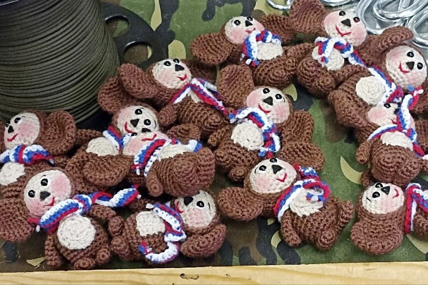 В очередной партии, подготовленной к передаче бойцам —эвакуационные стропы, спасательные пояса, маскировочные сети, защитные коврики, солдатские кисеты с предметами первой необходимости, сухой душ, сапёрные кошки, а также сшитые детьми небольшие обереги.