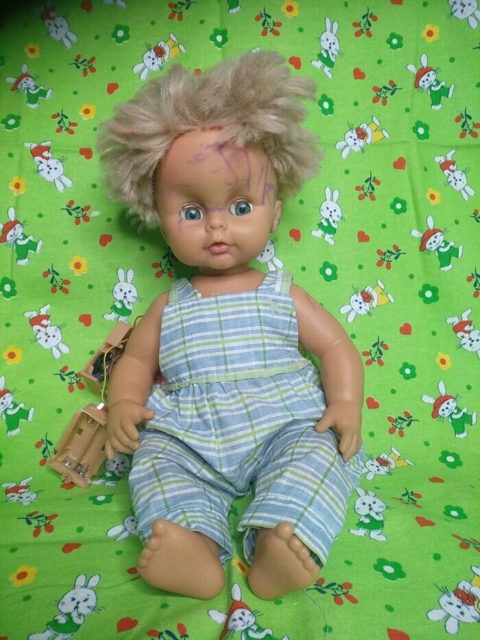 Работа над этим малышом продолжается. В прошлой части мне удалось починить ее механизм и мы узнали как она работает, что конечно же не может не радовать. Но останавливаться рано на достигнутом и нужно продолжать. В этой части я буду пытаться свести с лица куклы следы от фломастера, видимо когда - то этой куклой очень активно кто-то играл. Помнишь когда в детстве мы рисовали и фломастеры засыхали мы вливали в них спирт или одеколон и они снова продолжали нам рисовать? Все верно, в состав у них входит спирт. Но к сожалению фломастер спиртом на резине, виниле на куклах просто так не сотрешь, а поэтому нужно какое то иное средство. За ранее скажу, что ни какие растворители, спирты, и пятновыводители в таких случаях абсолютно бесполезны. А значит будем делать "гремучую смесь": Все надо делать очень быстро, так как очень сильно будет вонять. К своему лицу приложить в несколько слоев сложенное полотенце, что бы не вдыхать испарения и быстро смешать в пропорциях 1: 1 уксус + белизна и вылить в