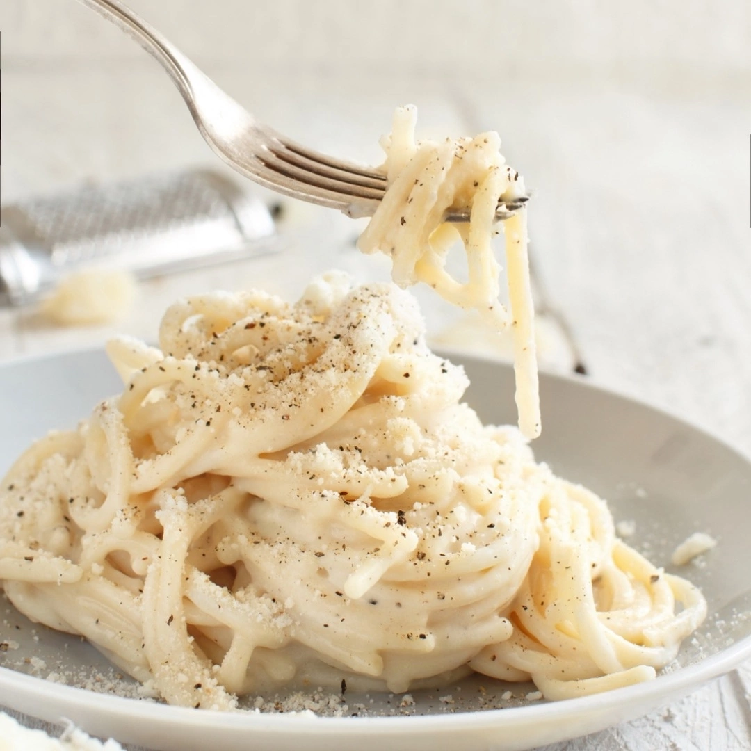 Друзья, сегодня приготовим популярное блюдо римской кухни – пасту Качо э пепе (ит.Cacio e Pepe) 😍 Ингредиенты: спагетти Граньяно – 170 гр; тёртый овечий сыр Пекорино Романо – 100 гр; свежемолотый чёрный перец – 1-2 ч.л; соль. Приступаем к приготовлению 👩🏻🍳 1️⃣ Натрите сыр Пекорино Романо на мелкой терке, чтобы впоследствии он лучше расплавился, и отставьте пока в сторону. А горошины чёрного перца измельчите, используя ступку или кофемолку. 2️⃣ Отварите спагетти в слегка подсоленной вода на 2-3 минуты меньше, чем указано в инструкции на упаковке. 3️⃣ Пока спагетти варятся, поджарьте молотый перец в сковороде на среднем огне примерно 1-2 минуты. До появления аромата, не больше! А затем добавьте в сковороду 1-2 половника воды, в которой варятся спагетти. 4️⃣ Томите перечную смесь в течение 2 минут. Когда спагетти достигнут нужной степени готовности (на 2-3 минуты меньше, чем указано в инструкции на упаковке), переложите их в сковороду с помощью щипцов. Воду из-под спагетти н